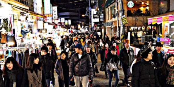 Hongdae is a popular district in Korea which is perfect for people who loves vintage, and both the street and nightlife. It is named after Hongik University, Korea’s prestigious art university, which is located just around its corner. It centers on the street and urban art, unique cafe experience, vintage, nightlife and clubs, indie music and culture and all sorts of entertainment. A variety of unique cafes and pet cafes, that you can only find here exclusively in Hongdae, such as the Hello Kitty Cafe where everything, from the doors, interior design, and to the food served is Hello Kitty inspired; Banji Cafe, with an actual ring craft shop where customers have their customized jewelry made with different plating, engravings and with gemstones, while indulging in a cup of tea at the rooftop which also provides a scenic view; and Ho Ho Myoll which is a vintage cafe that serves the best coffee and latte, is also a best find where a real Volkswagen is parked right beside the entrance, adding up to the cozy vintage vibe, making it the best place for your instagrammable photos. Hongdae is also renowned for its street entertainment, where indie bands and performers come to showcase their music, wherein some of the rising bands used to start off with. Many live music venues and festivals are crowded by both tourists and locals. In fact, Hongdae is home to YG Entertainment, the biggest talent agency in Korea, who discovered some of its talents right in the streets of Hongdae. The Street Art Exhibition, founded by Hongik University’s Fine Arts students many years back, is also a hit attraction where people can enjoy kaleidoscopic paintings, graffitis, wall art and many more made by various artists. The ‘Hongdaeap Artmarket Freemarket’ is held on ‘Hongdae Playground’, that is in front of the main gate of Hongik University, which is promoted by a non-profit organization. This is where you can purchase art materials, artworks and handcrafts made by students and street artists. Hongdae is also known for its active night life, where you’ll go crazy selecting from a wide array of clubs.